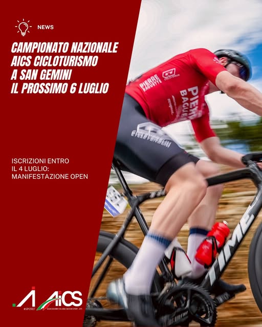 La Mediofondo Città di San Gemini “La cicloturistica” in programma a San Gemini (TR) il 6 luglio 2025, sarà valida come Campionato Nazionale AiCS di Cicloturismo. Il Campionato è organizzato dalla Direzione Nazionale, Dipartimento Sport, e dalla Commissione tecnica nazionale di Ciclismo, in collaborazione con il Comitato Regionale AiCS Umbria, il Comitato Provinciale AiCS di…